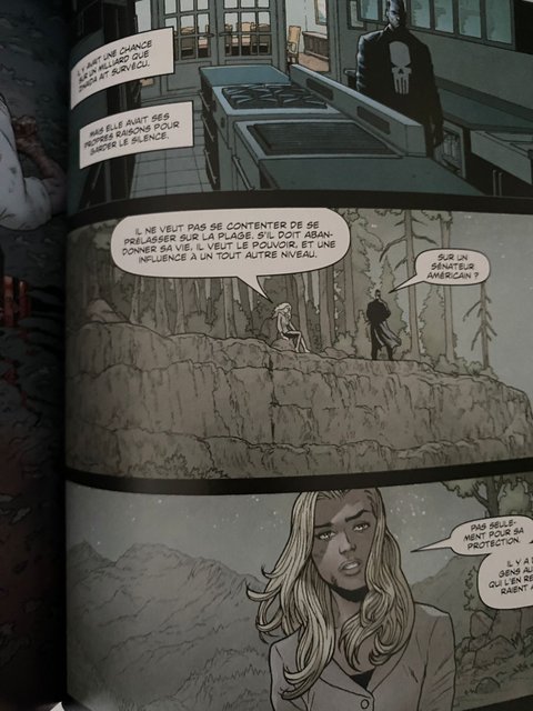 J'étais resté sur 3 dernières bonnes histoires du Punisher, celle-ci est en-deçà à tous les niveaux malheureusement . Le dessin me parait vide, tout se ressemble, les personnages sont fades, les scènes sont figées et en prime Frank Castle a des allures de vieil émo... Il est presque un second rôle oubliable .