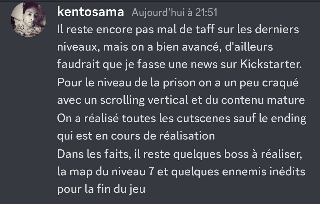 Bonjour les amis, je viens dépoussiérer un peu le topic en apportant pas mal de nouvelles concernant le projet. À ce stade du développement, c'est loin d'être évident, car il n'est pas possible de tout montrer pour préserver le plaisir des personnes souhaitant découvrir le jeu à sa sortie. Cependant, je vais utiliser ce topic afin de présenter certains éléments qui n'ont pas été montrés sur les réseaux, donc attention au spoil.