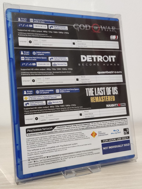 D'après mes recherches, cette boîte (deux disques et un code) fait partie d'un pack dédié de la PS4 Pro sur les territoires suivants : Thailande - Singapour - Malaisie - Indonésie. Il existe une autre version (que je n'ai pas) : 3 Games Bundle | Uncharted 4 + Horizon Zero Dawn + God Of War 3 Remastered