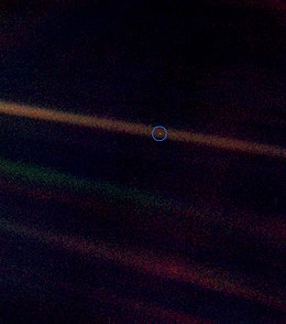 On a dit que l'astronomie incite à l'humilité et fortifie le caractère. Il n'y a peut-être pas de meilleure démonstration de la folie des idées humaines que cette lointaine image de notre monde minuscule. Pour moi, cela souligne notre responsabilité de cohabiter plus fraternellement les uns avec les autres, et de préserver et chérir le point bleu pâle, la seule maison que nous ayons jamais connue[trad 1]. »