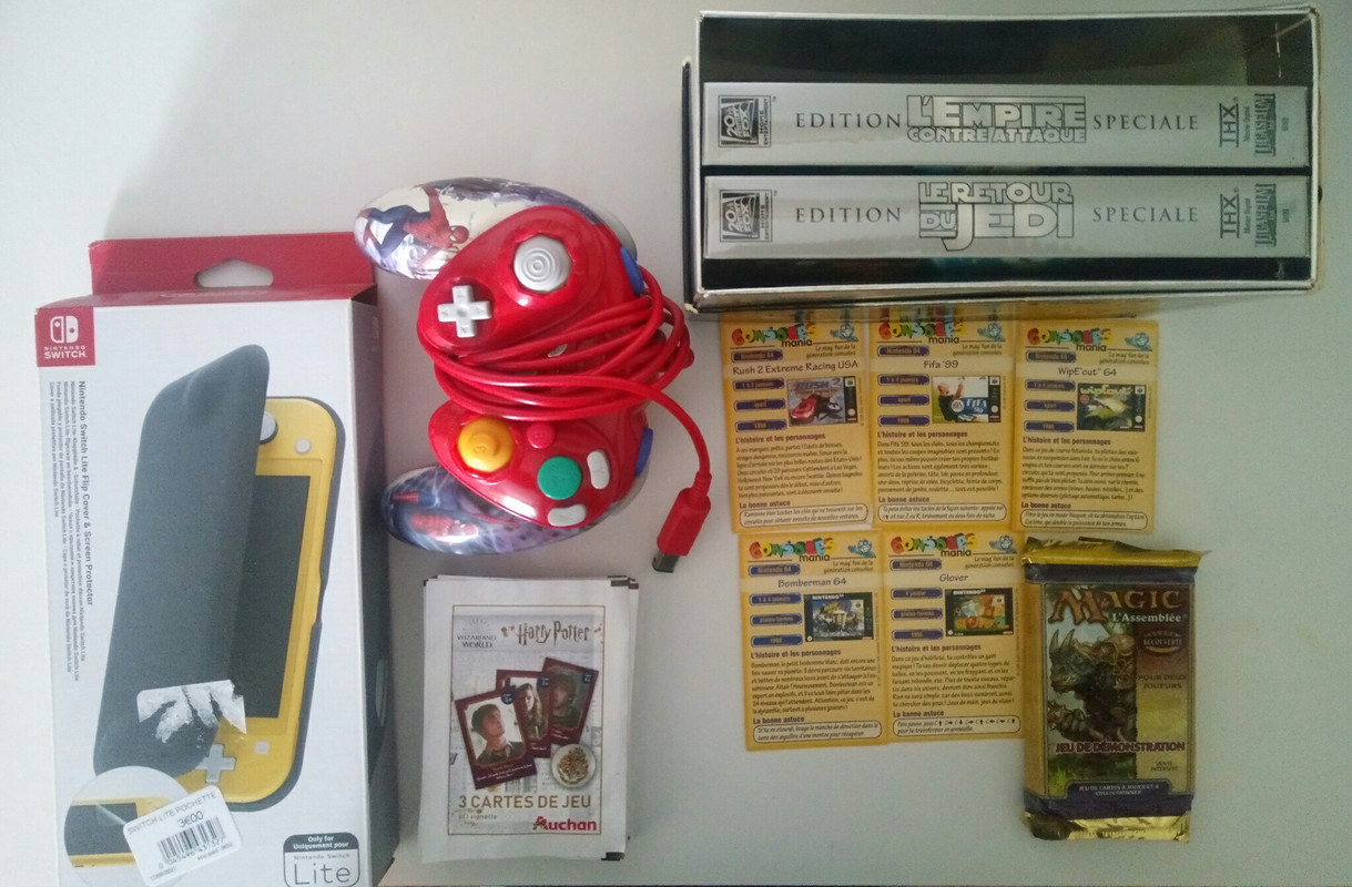 Le booster de cartes Magic moi je serai bien preneur si personne ne le veut et que tu le vends. Faudrait que je regarde mais je ne pense pas avoir des goodies à échanger. Bref je vais regarder ça.